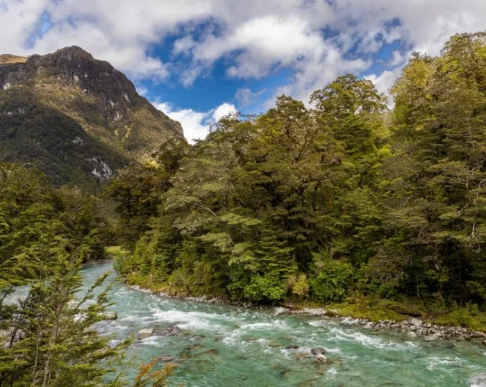 Du starter med at krydse en hængebro over Routeburn-floden og fortsætter ind i en spektakulær bøgeskov. Stien er jævn og flad, så du har gode muligheder for at holde øje med fugle, der flyver gennem trækronerne. Måske er du heldig at få øje på New Zealands mindste fugl, klatresmutte (Acanthisitta chloris), eller den sjældne gulhovedet mohua (Mohoua ochrocephala), som er endemisk for New Zealand.