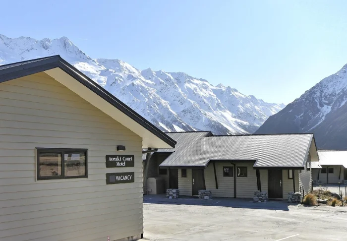 Aoraki Court Motel er et moderne og komfortabelt motel beliggende i hjertet af Mount Cook Village, omgivet af den storslåede natur i Aoraki/Mount Cook Nationalpark. Fra motellet er der en spektakulær udsigt til bl.a. Mt Sefton og The Footstool, og motellet er et ideelt udgangspunkt for både vandreture, naturoplevelser og afslapning i fredelige omgivelser.