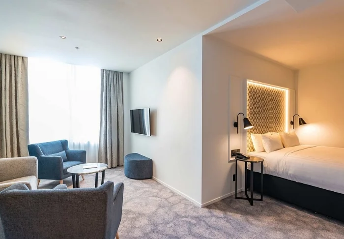 Hotellet er stilfuldt og moderne indrettet med fokus på komfort og kvalitet. Der er i alt 88 værelser, som alle har store vinduer, der giver masser af naturligt lys. Værelserne har enten kingsize-dobbeltseng eller to enkeltsenge og er udstyret med eget badeværelse, aircondition, skrivebord, værdiboks, strygefaciliteter samt Smart-TV. Derudover har du gratis wi-fi, elkedel og gratis te, kaffe og varm kakao til rådighed.
