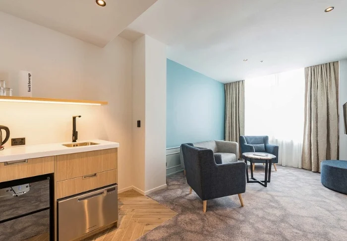 Mod tillæg kan du opgradere din værelseskategori til en toværelses-suite, som er større, har to separate soveværelser og et fuldt udstyret køkken (plads til 4 personer).