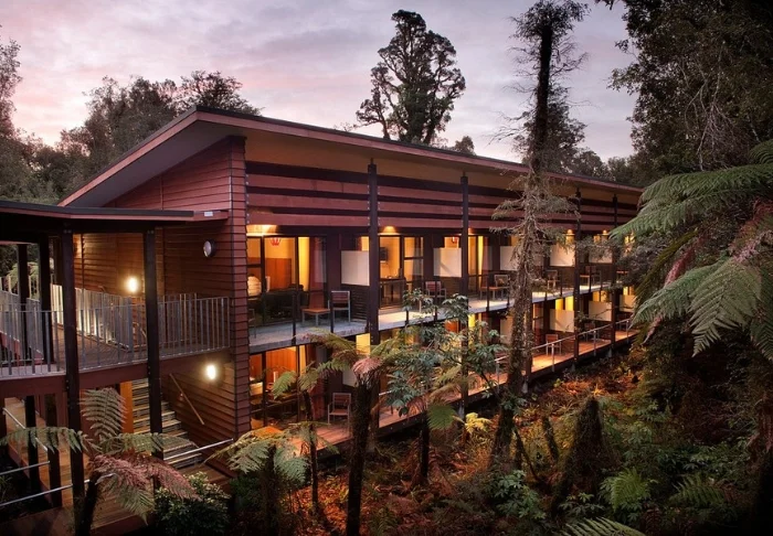 Det 5-stjernede Legacy Te Waonui Hotel ligger fredeligt og naturskønt midt i Franz Josef Village, omgivet af tætbevokset skov og med kort afstand til gletsjeren samt byens små butikker og restauranter. Hotellet er opført med stor omtanke for naturen og er smukt integreret i det grønne landskab, så det nærmest blender ind i omgivelserne. Hotellet har et bæredygtigt fokus, hvilket afspejles i brugen af energieffektive løsninger, naturlige materialer og genbrugstræ i opførelsen.