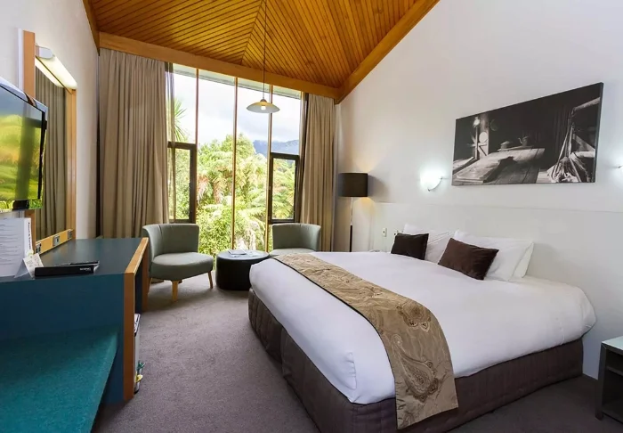 Hotellet rummer 227 værelser og suiter, der er indrettet i en hyggelig stil med udsigt til enten Lake Rotorua eller den frodige, grønne have. Alle værelser har gratis wi-fi, fladskærms-LCD-tv, safetybox samt te- og kaffefaciliteter, så du kan slappe af med en kop kaffe eller te på værelset.