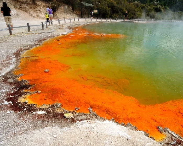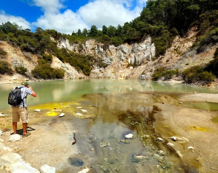 Derefter går rejsen videre til Wai-O-Tapu, hvor naturens kræfter har skabt et farverigt og fascinerende geotermisk landskab. Du ser bl.a. Champagne Pool, kratersøer og svovldamp, der stiger op fra jorden. Det er som at være på en anden planet, og ja, det lugter lidt af svovl, men det hører med til oplevelsen.