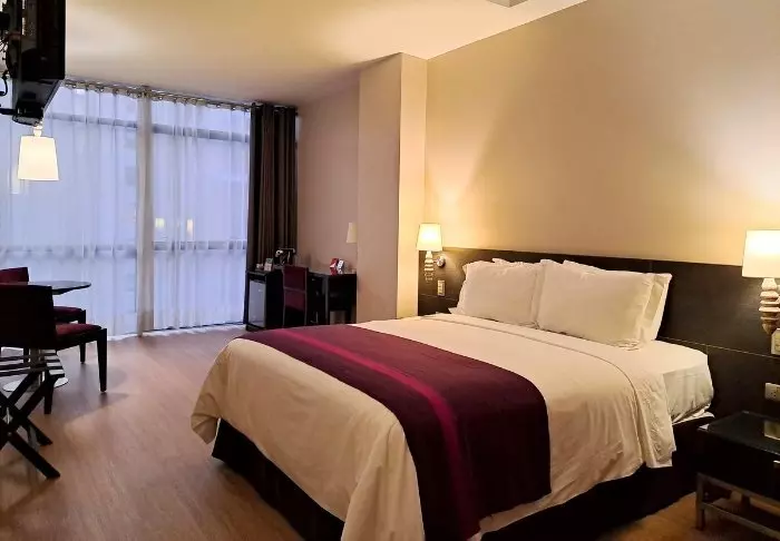 Hotellets værelser er simple indrettet og har alle eget badeværelse med gratis toiletartikler og hårtørrer. Værelserne er desuden udstyret med værdiboks, aircondition, kaffemaskine, wi-fi og TV.