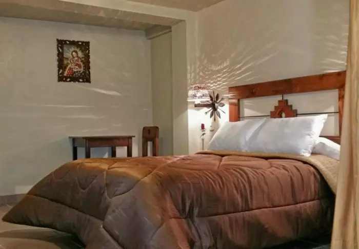 Værelserne er simpelt indrettede, men har alle radiatorer, kabeltv, wi-fi og eget badeværelse, hvor du kan få dig et fortjent langt varmt bad efter 2 dages trekking i Andesbjergene.