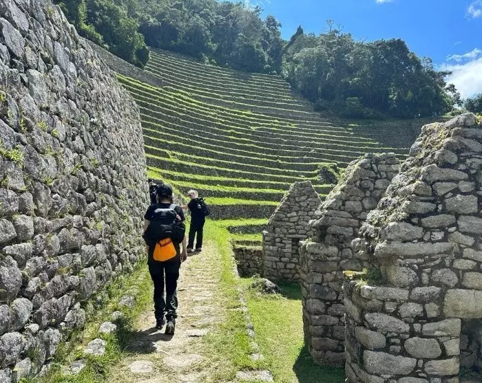 Du når det tredje pas i ca. 3.600 meters højde nær den velbevarede inkaby Phuyupatamarca, hvis quechua-navn oversat betyder ”Byen over skyerne” og henviser til byens høje placering. Her kan du tage dig et hvil og nyde din frokost med udsigt over den hellige inkadal; Urubamba-dalen. Derefter starter den lange nedstigning til Wiñay Wayna, som er det største kompleks i området efter Machu Picchu og Llactapata. Ruinerne ligger op ad den ene bjergside og består af huse, tårne og terrasser. Komplekset har en imponerende og smuk beliggenhed lige bag din lejr.