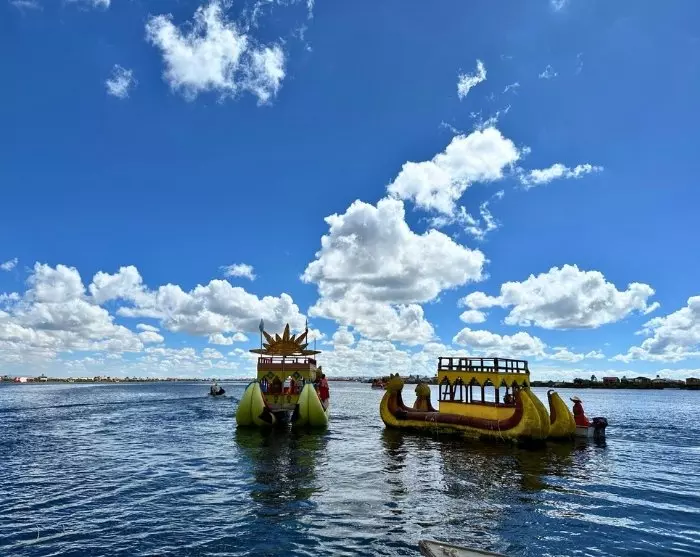 Fra byens havn sejler du først ud til de flydende siv-øer, Islas Uros, som stadig er beboet af Uros-folket. Dette folkefærd udnytter søens gratis byggematerialer, nemlig de stærke totora-siv, til bl.a. at bygge, øer, huse og både af. Selvom øerne i dag er blevet lidt kommercielle, så er det stadig fascinerende at lære om Uros-folkets kultur og gamle traditioner og ikke mindst opleve deres imponerende håndværk.