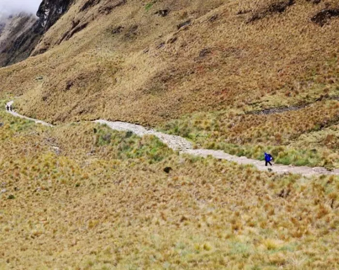 I dag er den hårdeste dag på trekket. Du vandrer først op forbi Llulluchapampa gennem et område med frodig tågeskov. Herefter begynder en stejl opstigning mod det ca. 4.200 meter høje Warmiwañusqa-pas, der er det højeste punkt på trekket. Passets navn er et quechua-ord, som oversat betyder ”Den døde kvindes pas” og henviser til klippeformationerne ved passet. På toppen kan du tage dig et velfortjent hvil, mens du nyder udsigten til sneklædte bjerge og Inkastien.