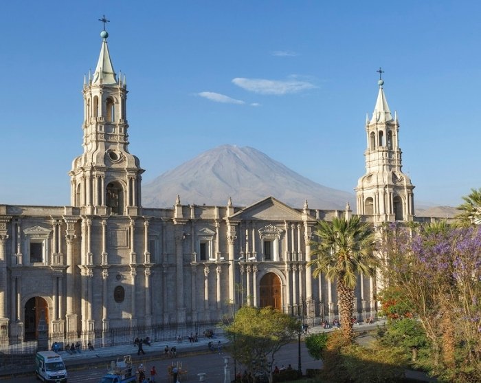 Denne morgen bliver du hentet på hotellet og kørt til lufthavnen i Lima, hvorfra du flyver til den elegante, koloniale by Arequipa. Byen er beliggende i Andesbjergene i næsten 2.400 meters højde med vulkanerne Misti (5.822 m), Chachani (6.057 m) og Pichu-Pichu (5.669 m) som smuk kulisse.