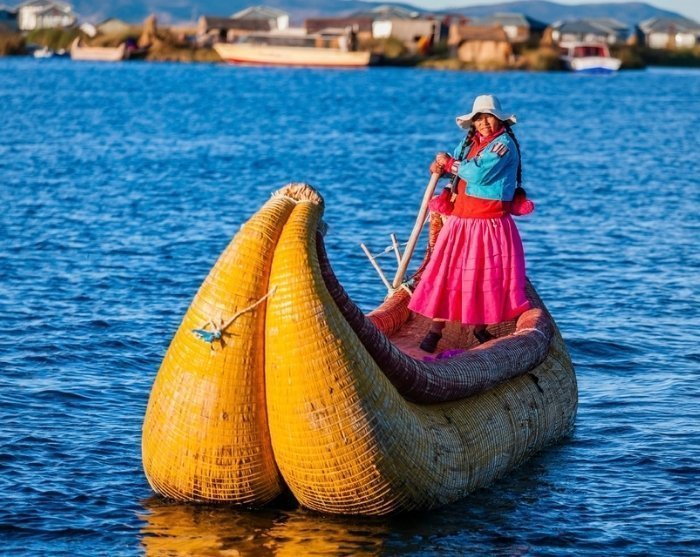 Fra byens havn sejler du først ud til de flydende siv-øer, Islas Uros, som stadig er beboet af Uros-folket. Dette folkefærd udnytter søens gratis byggematerialer, nemlig de stærke totora-siv, til bl.a. at bygge, øer, huse og både af. Selvom øerne i dag er blevet lidt kommercielle, så er det stadig fascinerende at lære om Uros-folkets kultur og gamle traditioner og ikke mindst opleve deres imponerende håndværk.