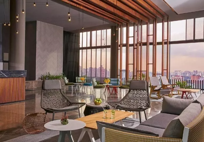 Det er ikke kun udefra, du vil bemærke dets spektakulære måde at omfavne naturen på midt inde i storbyen. På 27. etage finder du nemlig tagterrassen, som er dekoreret med 21 forskellige slags slyngplanter og vinstokke. Her er der rig mulighed for at slappe af på en solseng ved siden af én af de to pools. Nogle etager længere nede finder du endnu en terrasse, som ligner en frodig oase. Tag en god bog med og sæt dig i deres loungeområde eller find træningstøjet frem og lav nogle øvelser på det grønne græsareal, mens du nyder den fantastiske udsigt. Du har også mulighed for at benytte deres fitnessrum, som er åben 24 timer i døgnet.