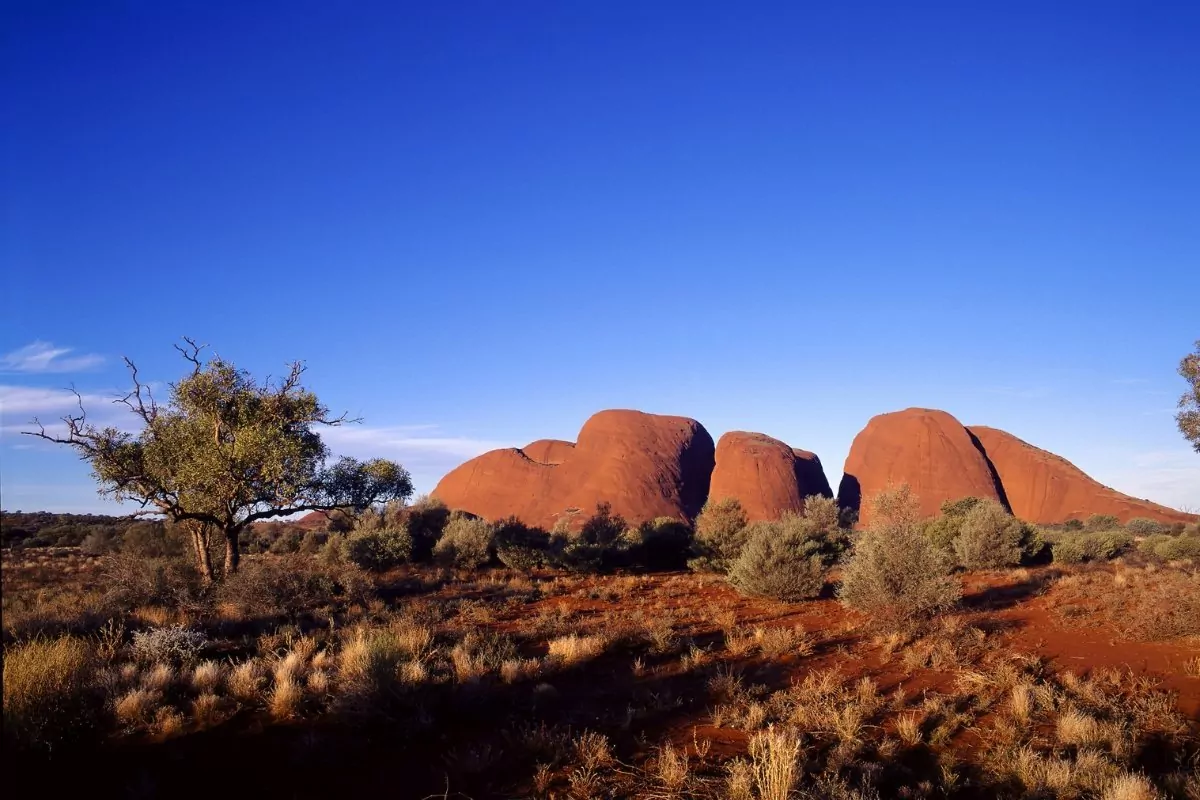 Fra Uluru fortsætter du videre til klipperformationerne, Kata Tjuta, som ligger godt 50 km mod vest. Kata Tjuta betyder ”mange hoveder”, og på afstand er det tydeligt, hvordan de 36 runde klipper ligner isser, der stikker op i landskabet.