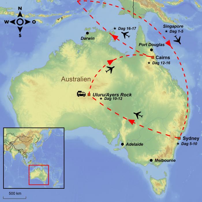 Bemærk: Der er ofte en mellemlanding med flyet mellem Uluru/Ayers Rock og Cairns. Mod tillæg kan der nogle dage flyves direkte til Cairns. Forhør dig om pris hos din rejsekonsulent.
