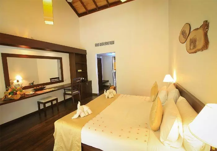 Din halvpension serveres i hovedrestauranten, hvor stemningen er varm og afslappet. Her venter en varieret buffet med både srilankanske specialiteter og internationale retter. Når aftenen falder på, kan du runde dagen af med et spil kort eller en farverig drink under den stjerneklare himmel, mens naturens rolige lyde langsomt tager over.