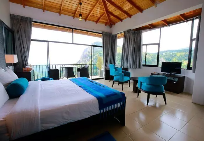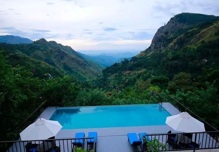 Det lille intime The Pinnacle Ella ligger utroligt smukt i Ellas bjergrige landskaber. Her er en fænomenal udsigt over Ella Gap med Ella Rock og Little Adam’s Peak på hver side.