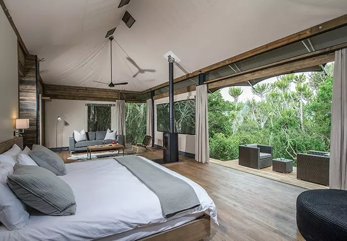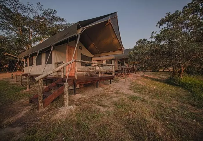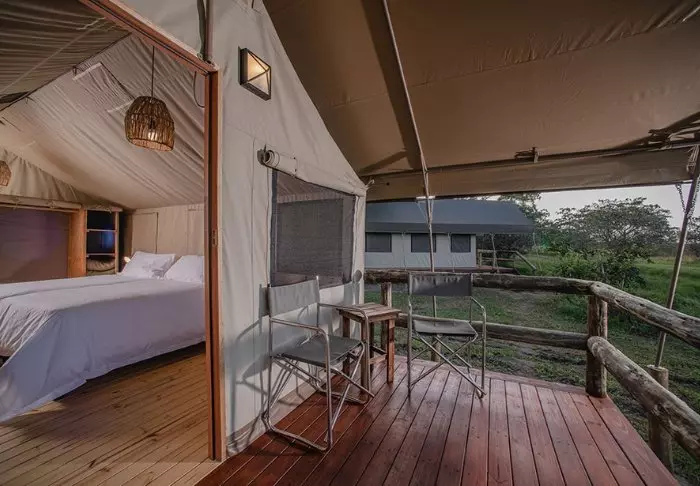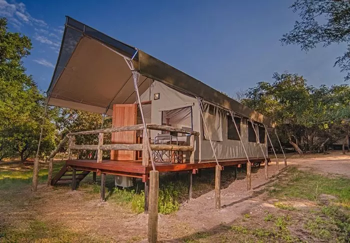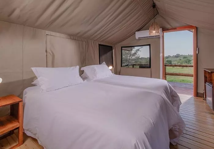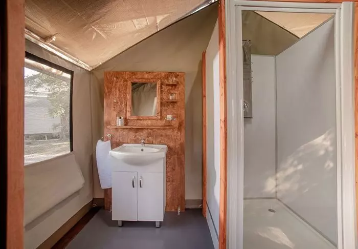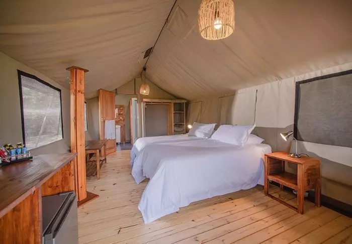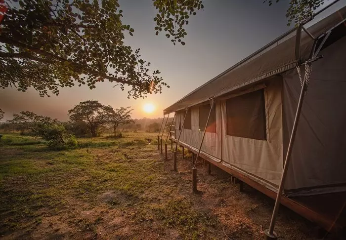 Her bor du i rummelige, lækre kanvastelte, som står hævet over jorden på platforme. Teltene har moderne faciliteter som trægulve, elektricitet, aircondition, gode toilet- og badefaciliteter og mulighed for at lave te og kaffe. Takket være kanvasvæggene kan du dog stadig høre og dufte naturen, som er lige udenfor! Her er både telte med dobbeltsenge samt telte, som er særligt egnede til familier. Alle telte har egen veranda.