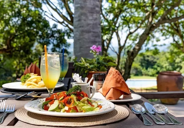 Middagen indtages i den hyggelige boma, hvor der ofte er lokal dans og musik. Morgenmad kan nyde i restauranten eller på den udendørs terasse, og blivre du lækkersulten i løbet af dagen, kan vi varmt anbefale, at du besøger den lille kaffe-kage-kiosk, som ligger belejligt midt i loungeområdet.