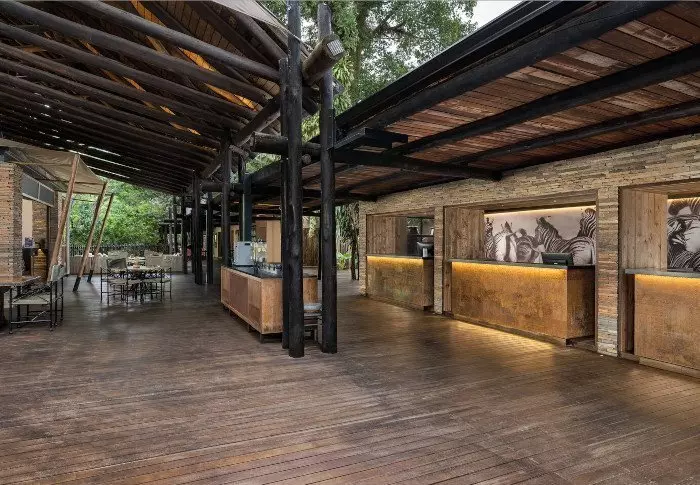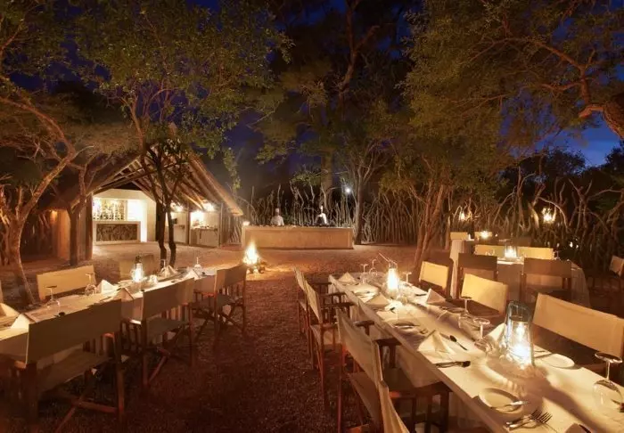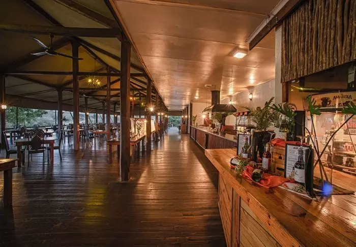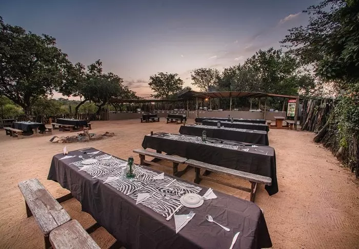 Campen byder på en dejlig restaurant, en livlig bar, en udemærket lille butik samt flere ”bomaer”, som er de typiske sydafrikanske bålpladser, hvor maden serveres under åben himmel.