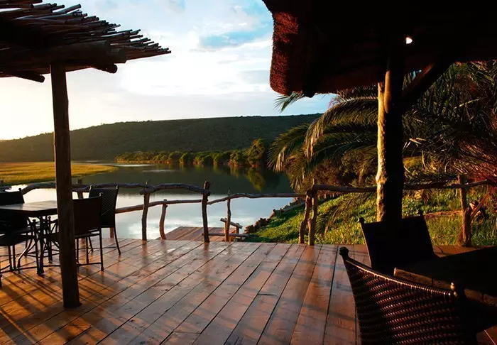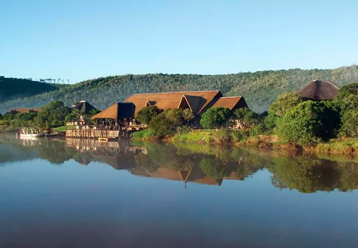 Den 4-stjernede River Lodge ligger i Kariega Game Reserve på bredden af, ja nærmest ud i Bushman’s River. Lodgens restaurant, bar og swimmingpool ligger på en måde, så man næsten føler, at man er omgivet af flodens stille blanke vand.