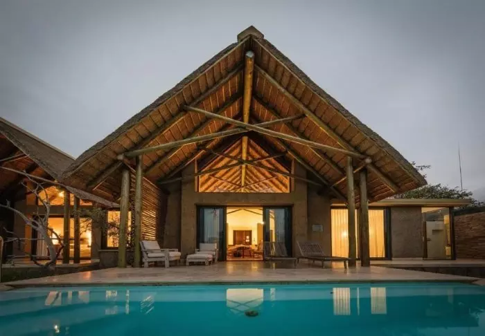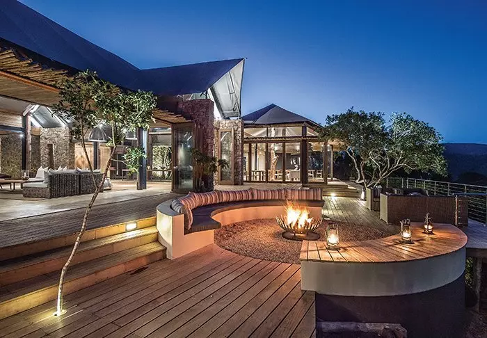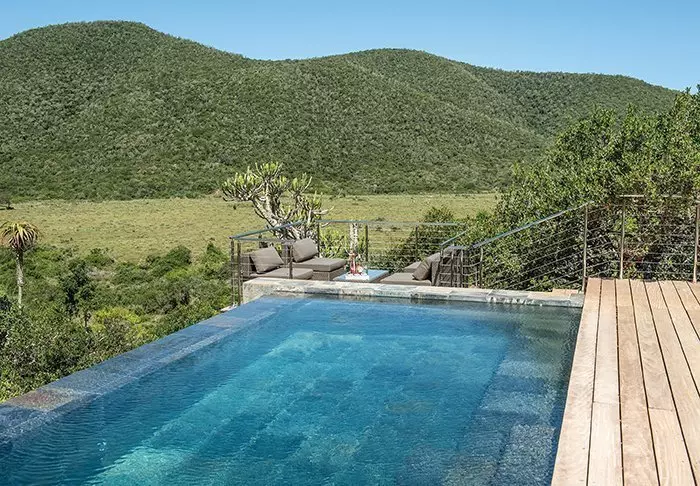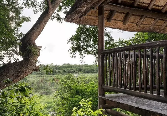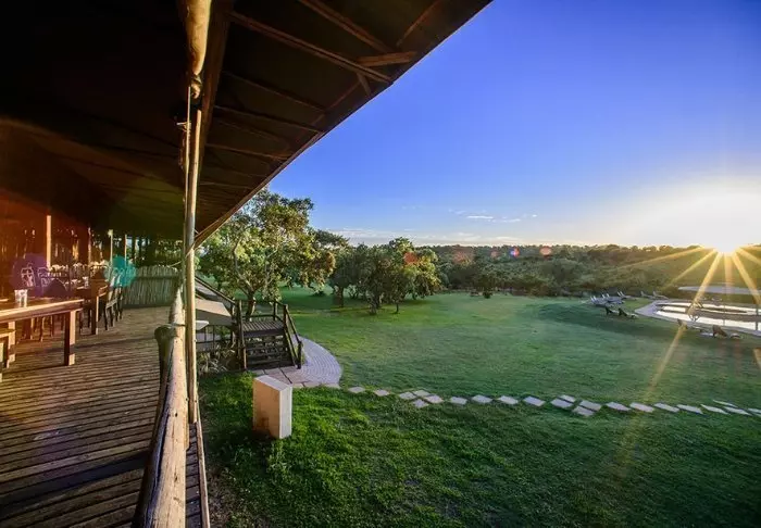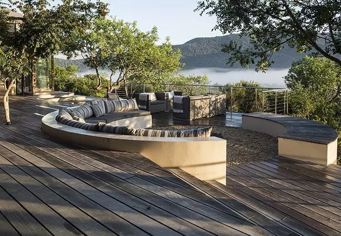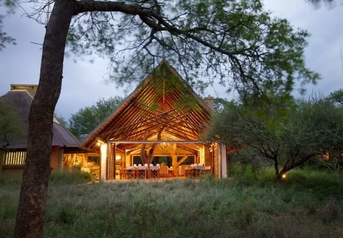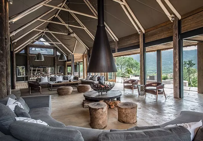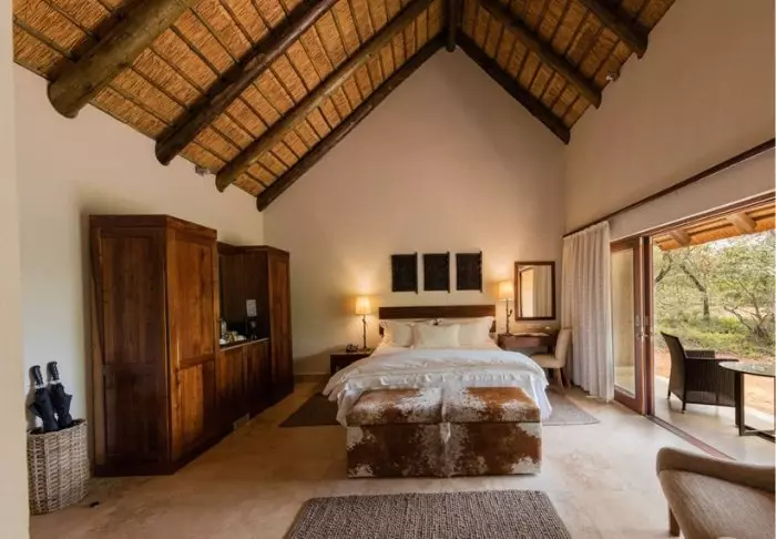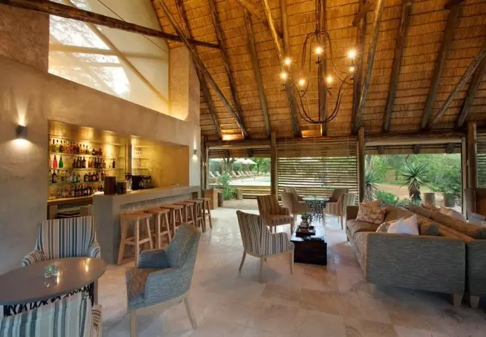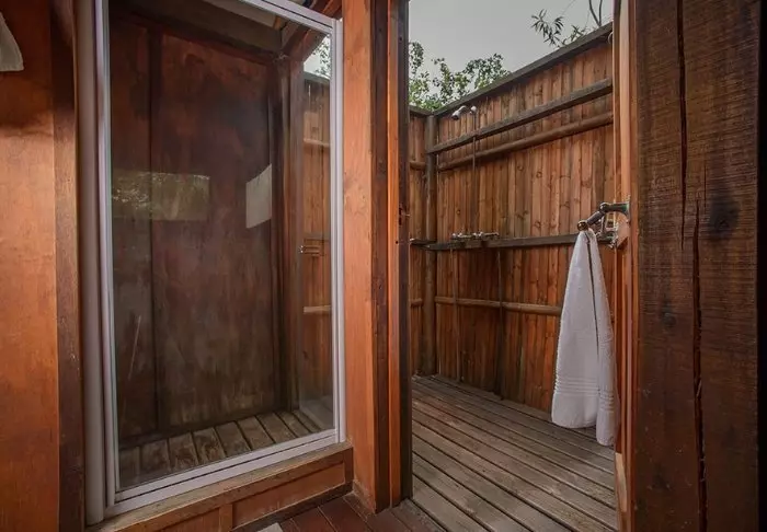 Hele lodgen er bygget på en skråning i en lidt afsides del af vildtreservatet, hvilket sikrer uforstyrrethed og uhindret udsigt til naturen lige udenfor.