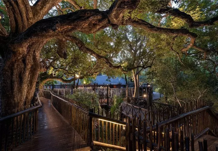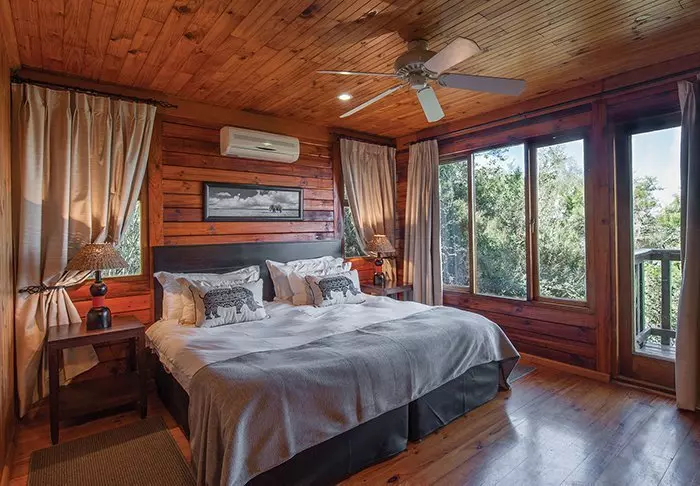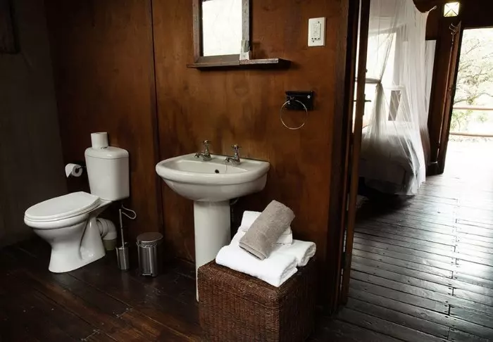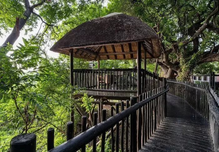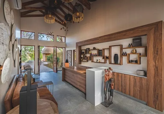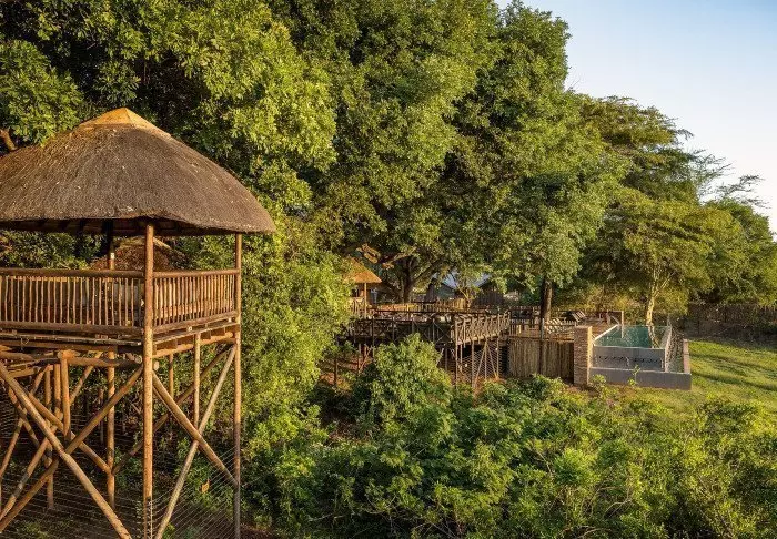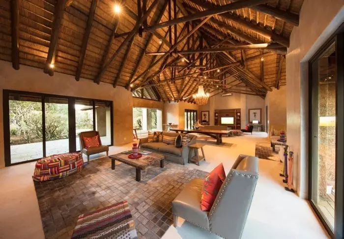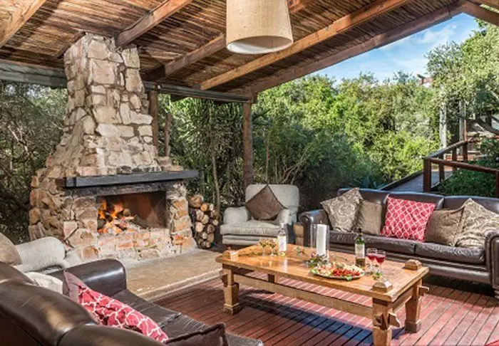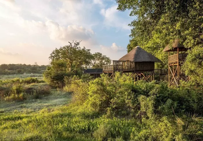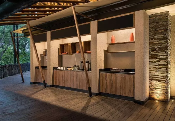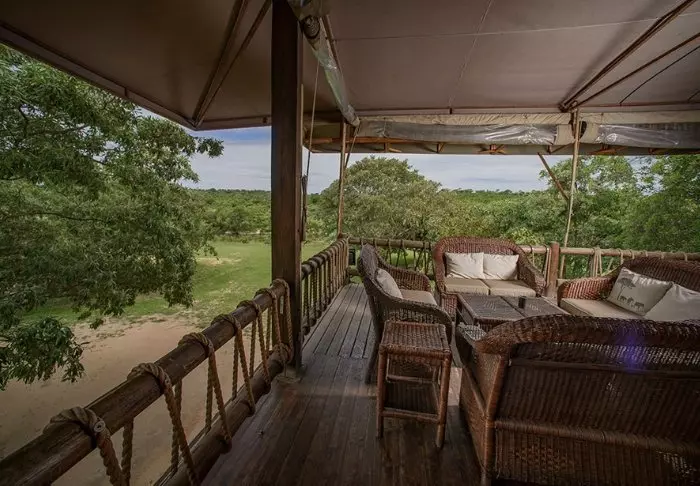 Hele lodgen er bygget på en skråning i en lidt afsides del af vildtreservatet, hvilket sikrer uforstyrrethed og uhindret udsigt til naturen lige udenfor.