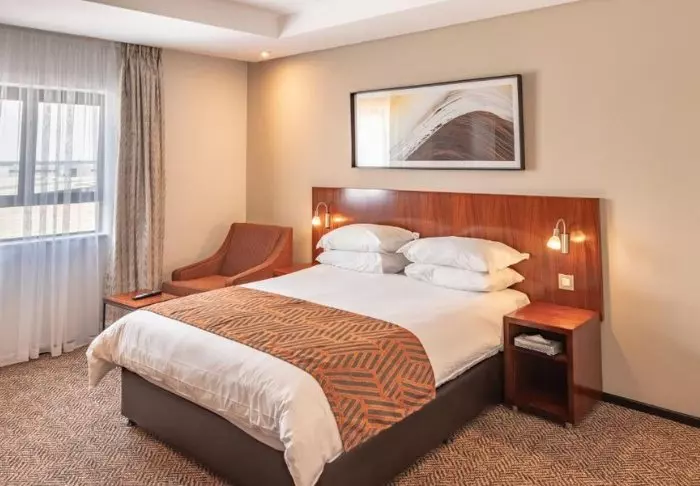 Hotellet har 150 værelser fordelt på 3 etager. Hotellet er indrettet i moderne stil med varme farver og med et strejf af Afrika. Værelserne har aircondition, fladskærms-tv, sikkerhedsboks, strygejern og -bræt, kaffe- og tefaciliteter samt badeværelse med toiletartikler og hårtørrer.