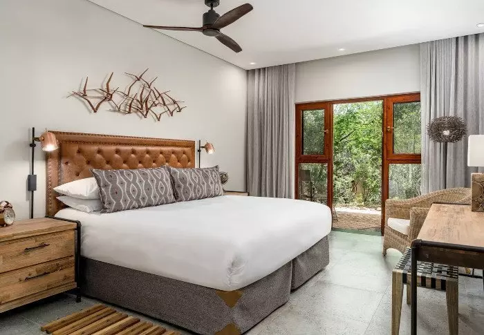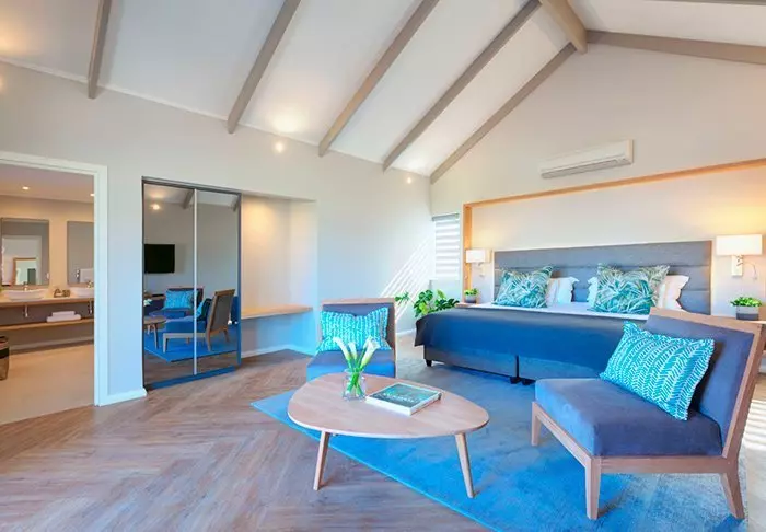 Her er blot 15 suiter og 10 villaer, som alle er luksuriøst og stilfuldt indrettet i afdæmpede naturlige farver, så indretningen ikke tager fokus fra eller forstyrrer naturen, som er lige udenfor de store vinduer. Alle suiter har egen terrasse, hvorfra du kan nyde udsigten til bushen. Her er naturligvis også aircondition, minibar og te- og kaffefaciliteter.