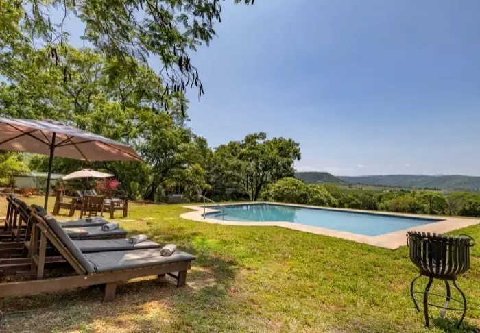 Den smukke lodge ligger i en vidunderlig, rolig natur omgivet af smukke haver og stor swimmingpool – kun et stenkast fra Kruger National Park.