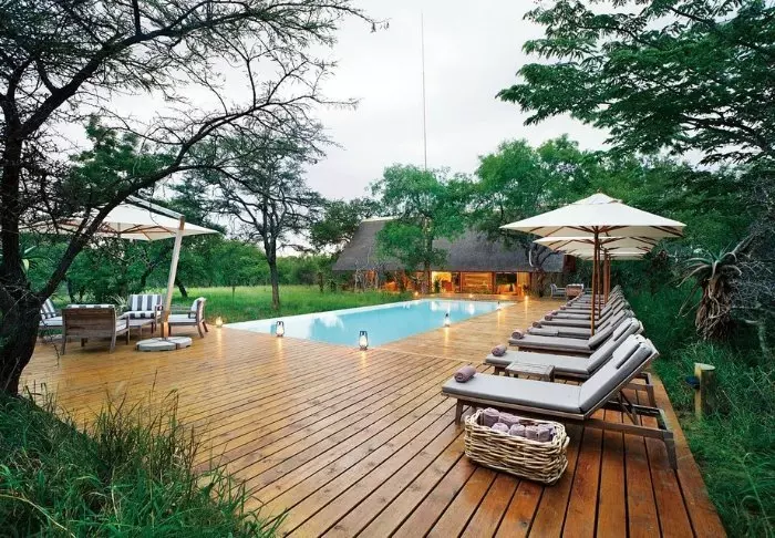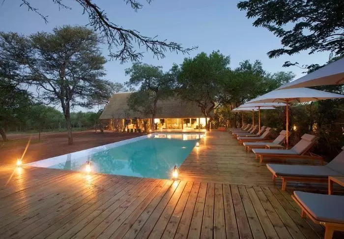 Lejren ligger i et privat område inde i selve Kruger Nationalparken og fra poolen har du en flot udsigt ind mod nationalparken. Ofte holder en flok flodheste til i floden lige nedenfor den store græsplæne – og der er sat bænke op (og hegn!), så du i ro og mag kan sidde og lytte til deres prusten og moslen i vandet nedenfor.