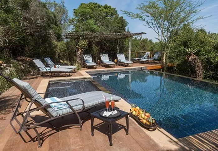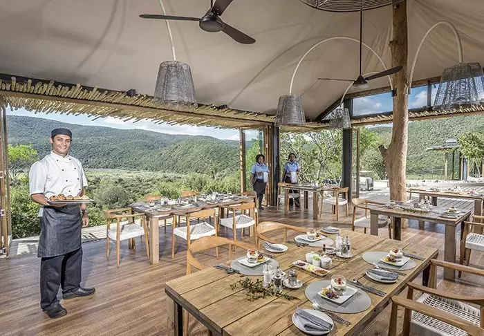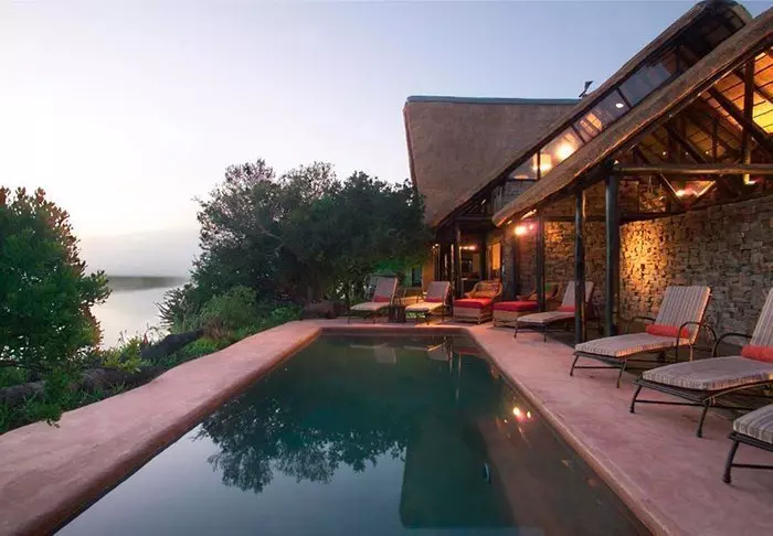 Det 4-stjernede Main Lodge ligger i Kariega Game Reserve på en højderyg i et indhegnet område. Placeringen på højderyggen giver alle chalets en unik udsigt ud over reservatet og med mulighed for at spotte dyr direkte fra altanen.