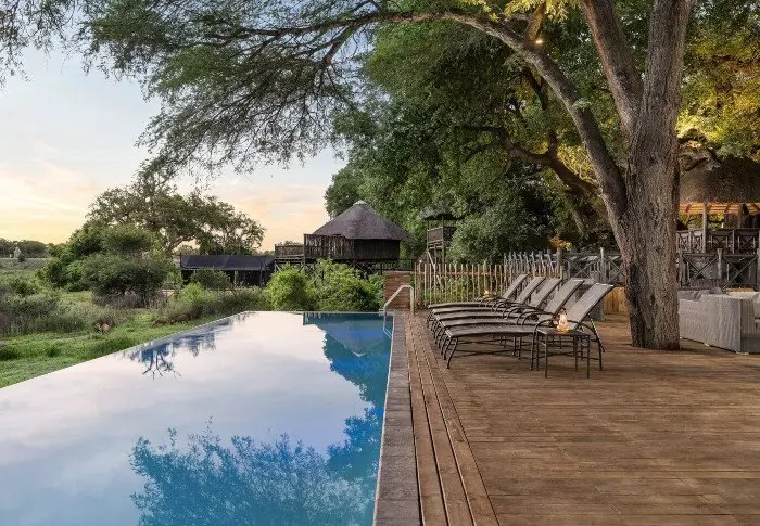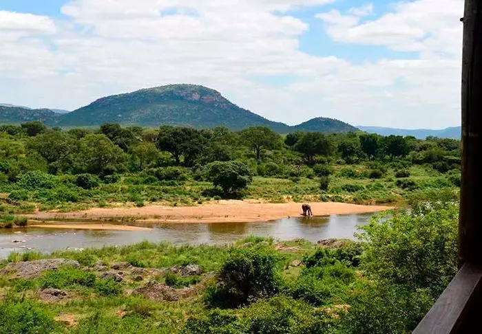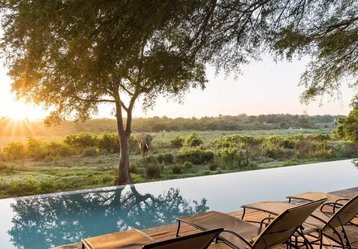 Fra det hyggelige loungeområde ved den ene pool, har du udsigt mod Kruger Nationalpark på den anden side af Sabie River. Helt tidligt om morgenen eller sidst på dagen er lyset helt fantastisk, og er du heldig kommer der måske en flok elefanter ned for at bade i floden.