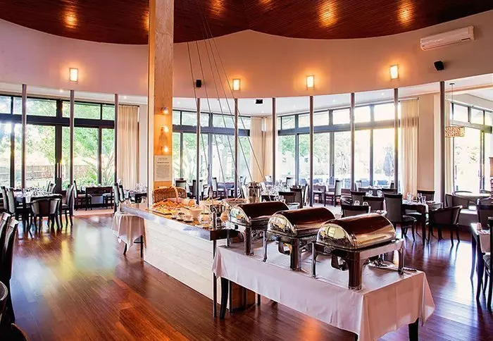 Med panoramaudsigt over savannen og Crocodile River føler man sig straks i pagt med naturen og de vilde dyr. Lodgen er 4-stjernet og byder på flere muligheder for afslapning og wellness såsom spa kur, massage, svømmeture og så den fantastiske udsigt.