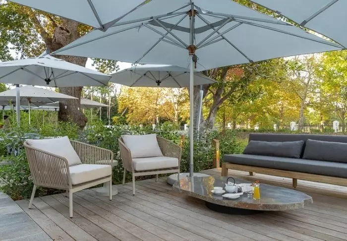Hele hotellet er stilfuldt indrettet i blide nuancer, som matcher den omkringliggende natur og medvirker til det fredfyldte og oaselignende miljø. Her er 44 rummelige og moderne værelser udstyret med te/kaffefaciliteter i form af Nespresso-maskiner, aircondition, satellit-tv, værdiboks, minikøleskab, hårtørrer, L’Occitane-toiletartikler og USB-stikkontakter. Alle værelserne har en hyggelig privat terrasse eller balkon med udsigt til haven og en af de to swimmingpools.