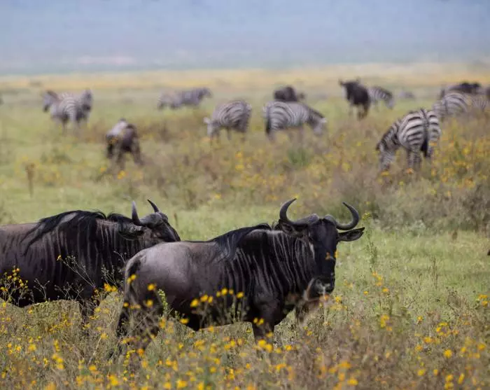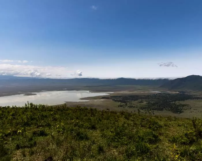 Fra morgenstunden kører du ned i det mægtige Ngorongoro-krater. Krateret er verdens største intakte kratergryde (caldera). Vulkanen eksploderede for 2-3 millioner år siden og faldt sammen oveni sig selv og efterlod et gigantisk hul, der i dag er hjem for mere end 25.000 dyr og 500 forskellige fuglearter.