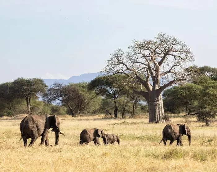 Tarangire Nationalpark er også kendt for sine mange baobabtræer. Du skal være uheldig for ikke at få et billede af en elefant under et baobabtræ, hvilket på fineste vis illustrerer størrelsen på nogle af træerne. Baobabtræet er én af verdens ældste træslægter, og nogle estimater siger, at træet kan blive op til 3.000 år gammelt. Det siges, at et baobabtræ først er fuldvoksent, når det er 1.000 år gammelt!
