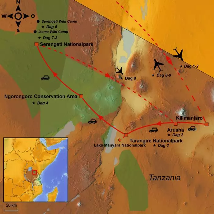 Du oplever det nordlige Tanzanias mest kendte nationalparker, og du kører ad ukendte bagveje mellem nogle af parkerne og oplever lokale landsbyer, hvor næsten ingen rejsende udefra kommer.