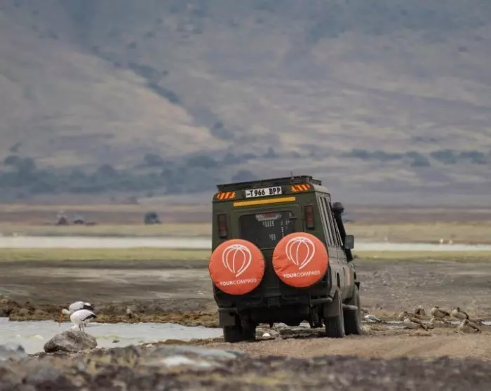 Fra morgenstunden er der afgang på safari i Ngorongoro-krateret, som er verdens største intakte kratergryde (caldera).