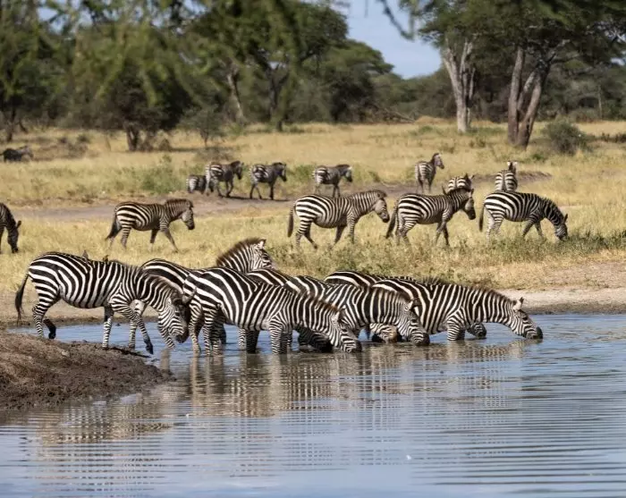 Eftermiddagen byder på safari i Tarangire Nationalpark. Du kan glæde dig til at opleve elefanter i massevis! Parken er hjem for det største antal af elefanter i hele det nordlige Tanzania. Der er flere grunde til, at elefanterne kan lide at være her. Én af grundene er, at de altid kan finde vand i Tarangire. Selv i den tørreste periode af året, hvor floden næsten er tørlagt, ved elefanterne, hvor de skal grave efter vand.