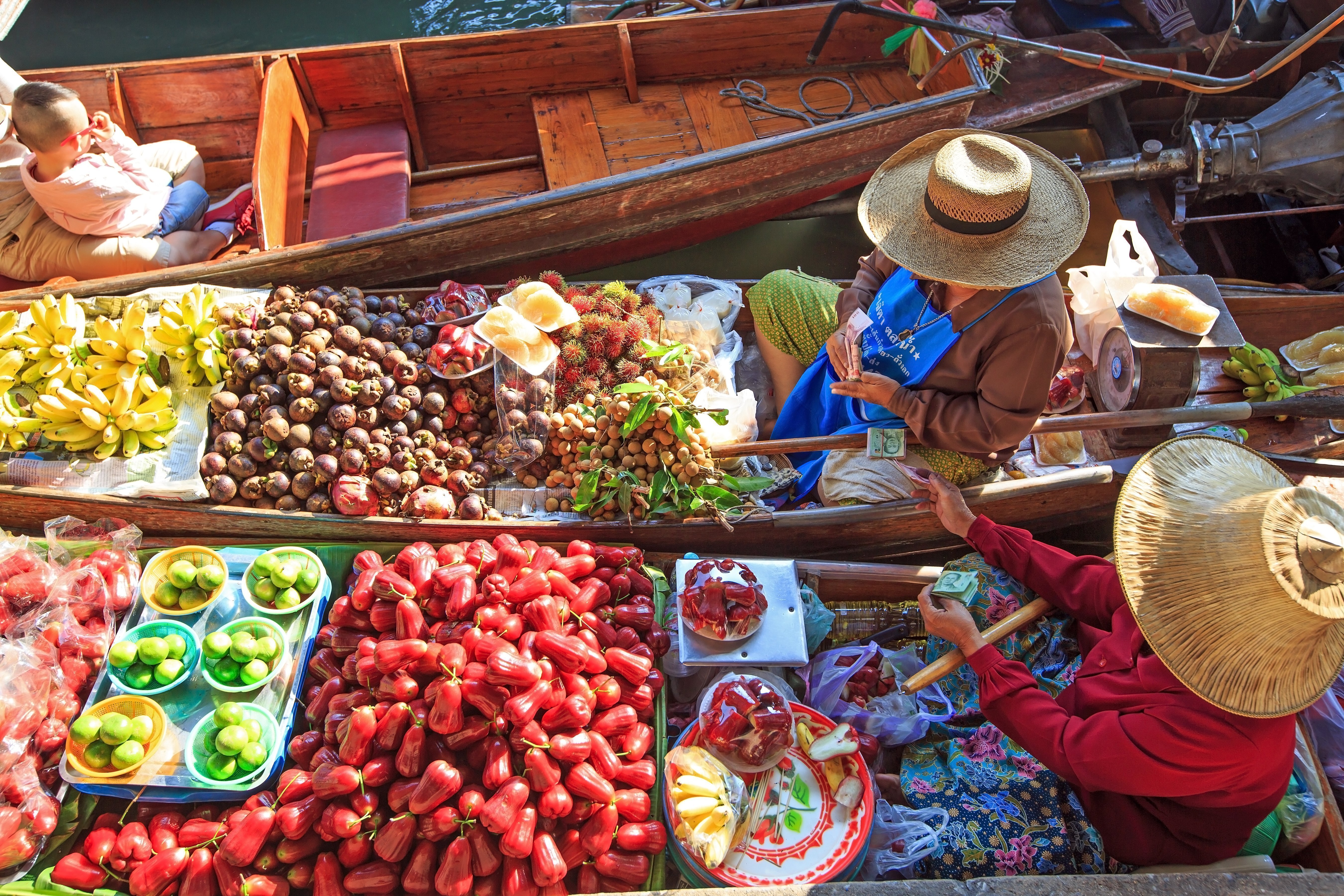 Ved ankomst går du ombord i en traditionel piskerisbåd, der sejler dig gennem kanalerne. Du sejler forbi lokale træhuse, der står på pæle og ind til selve Damnoen Saduak-markedet. Træboder med souvenirs og malerier er opstillet langs kanalerne og sælgere sejler rundt med alt fra blomster til farverige frugter og kokos-is. Nyd atmosfæren der på en og samme tid er både kaotisk og charmerende. Måske falder du over noget, du bare må eje.
