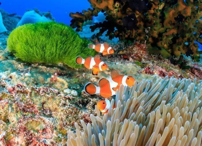 Du går tilbage ombord på båden, der sejler dig til dagens første snorkelstop. Du ifører dig maske, snorkel og svømmefødder og hopper i vandet. Her vil du opleve den smukke undervandsverden med flotte koraller og stribede fisk – måske er du heldig at få øje på Nemo.