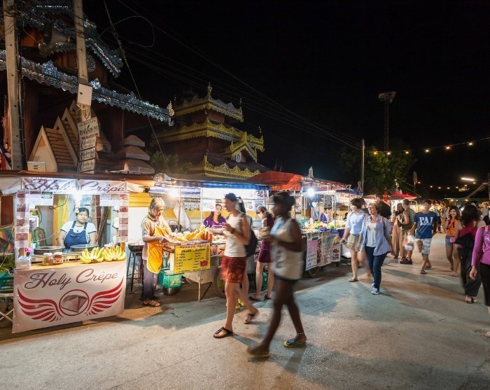 Herefter fortsætter du til det lokale marked Chang Peuk Gate Market, som ligger ved den nordlige port. Her kan du vælge mellem en forfriskende smoothie eller en klassisk thailandsk dessert.