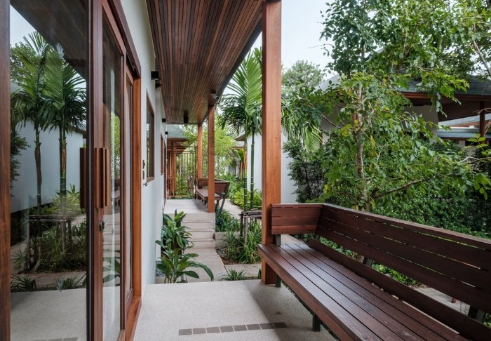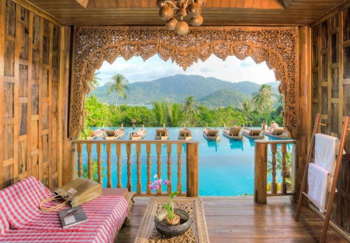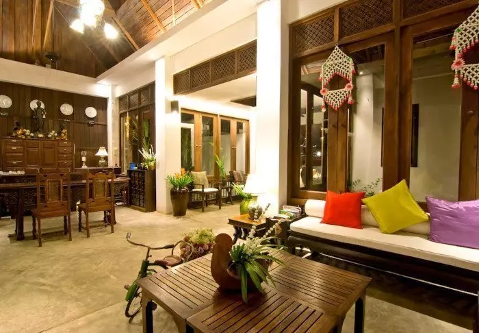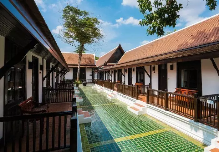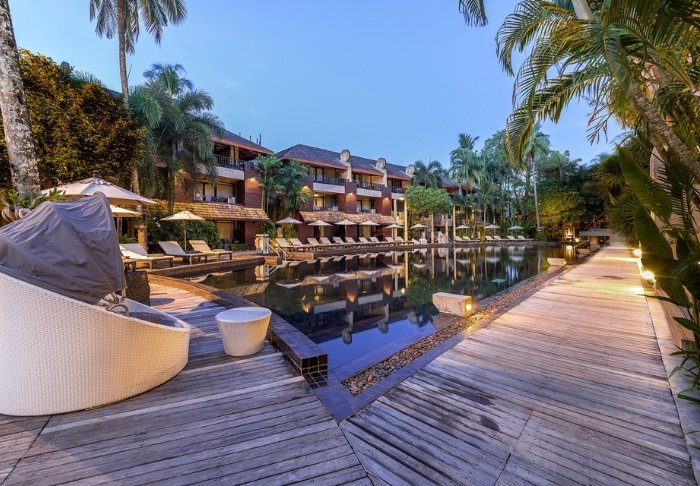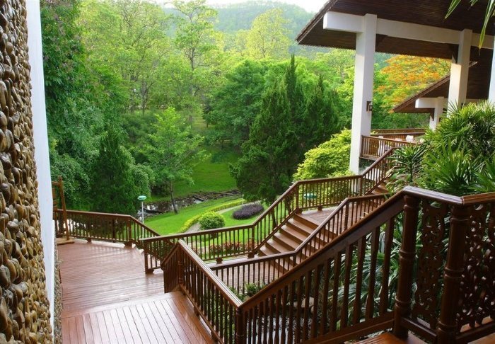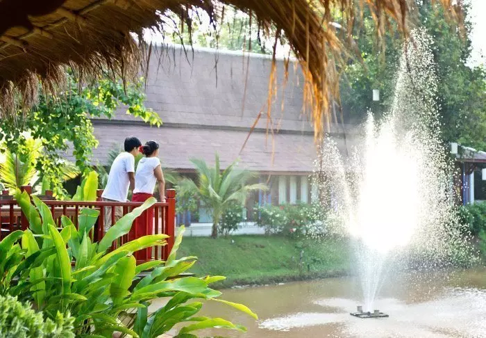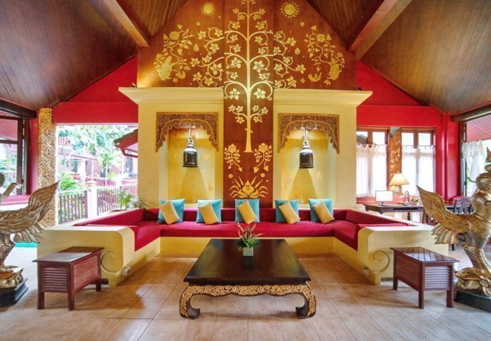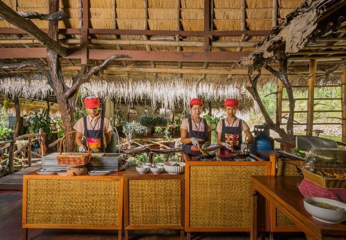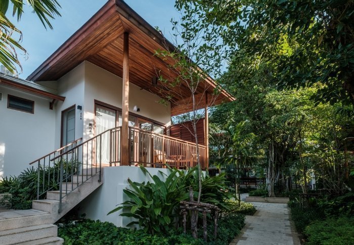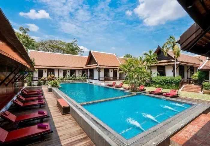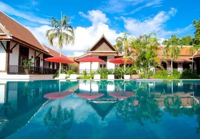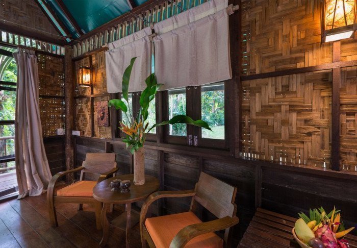 Resortet er bygget i og indrettet med smukt, mørkt træ og emmer af nordthailandsk charme.