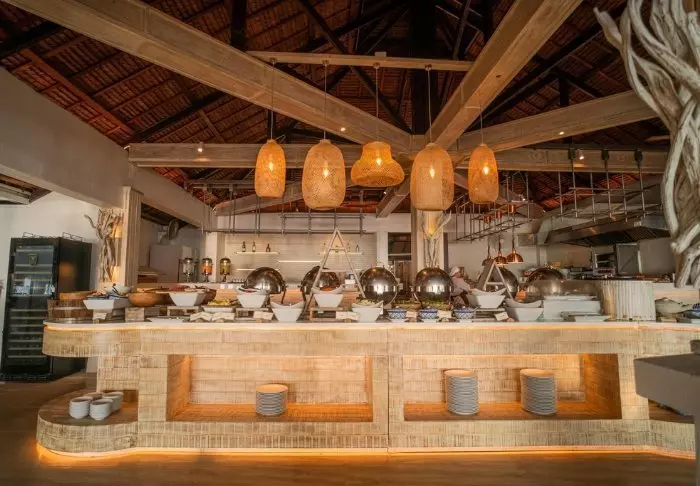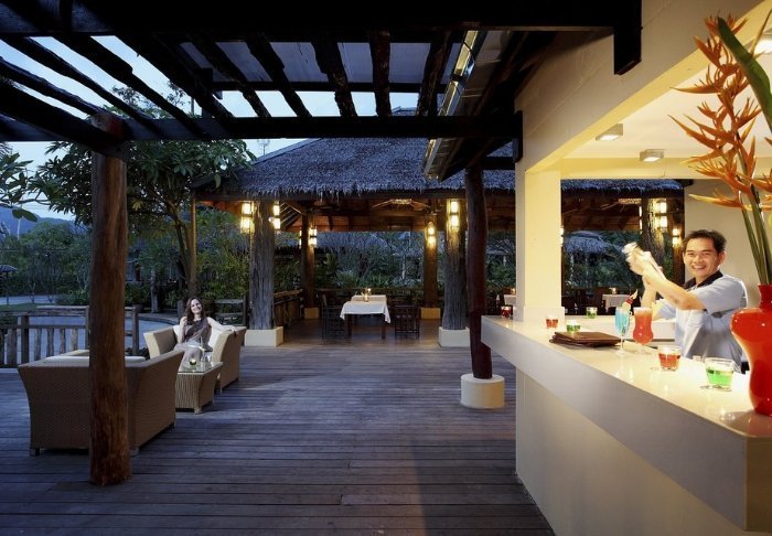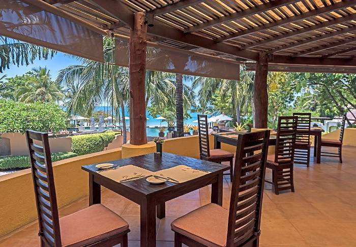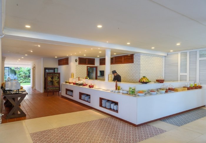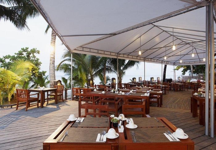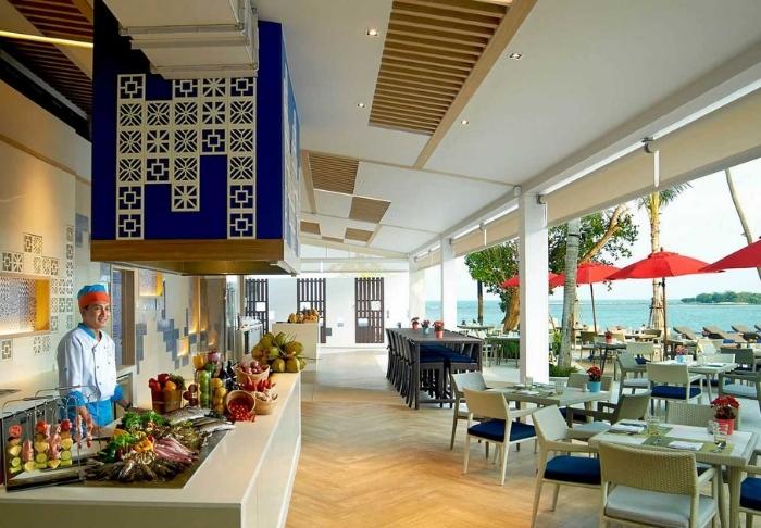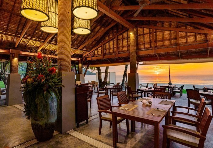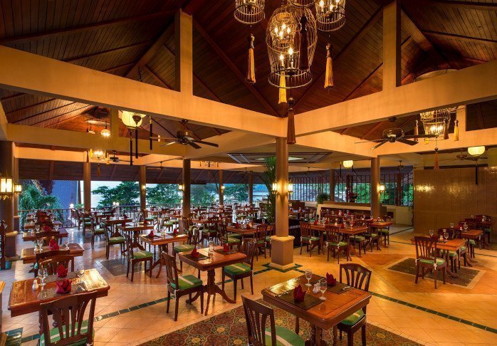 Når sulten melder sig, kan du besøge en af resortets 3 spisesteder, der alle ligger med udsigt over havet: Atrium Café, Beach Bar & Restaurant og Poolside Bar. Her serveres en variation af både asiatiske og internationale retter. Snyd ikke dig selv for en frisk drink lige netop her i strandkanten.