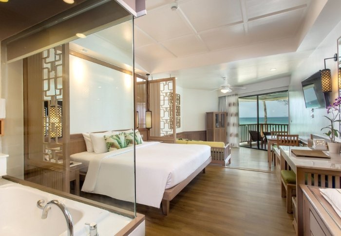 Resortet er indrettet i smuk thailandsk stil og du bliver budt velkommen med en betagende udsigt over Andamanerhavet og de omkringliggende kalkstensklipper.