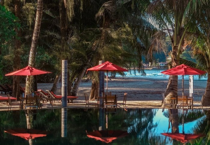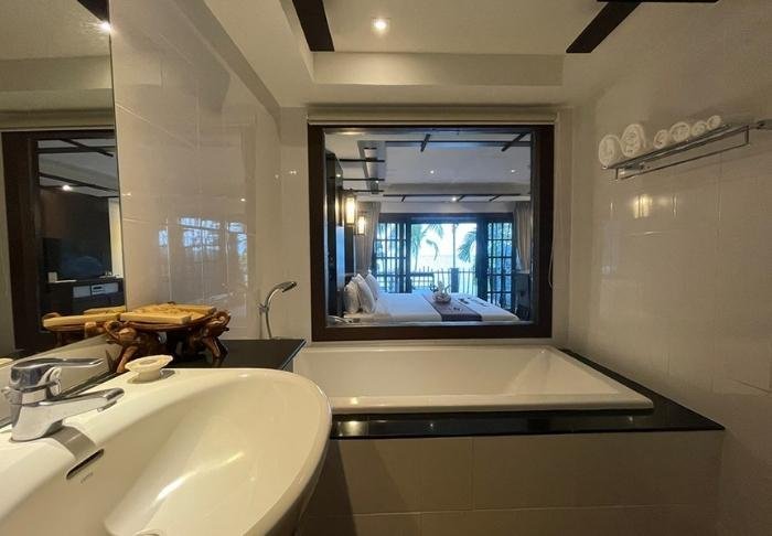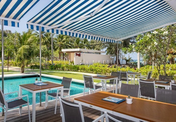 Resortet har en vidunderlig pool, der grænser lige op til stranden, og fra poolkanten kan du nyde udsigten over Andamanhavet. Når du trænger til et hvil, kan du finde dig til rette i en af de mange liggestole, der ligeledes byder på en smuk udsigt over havet.