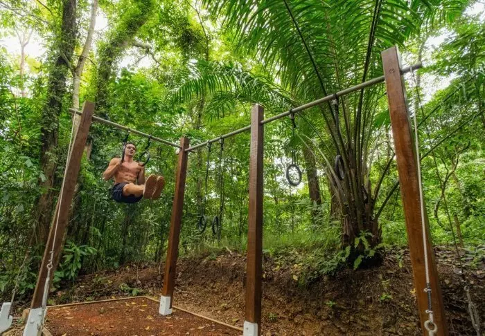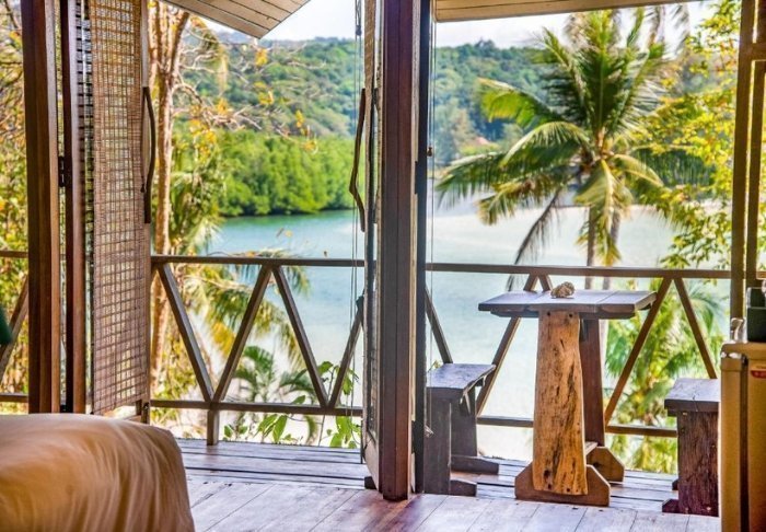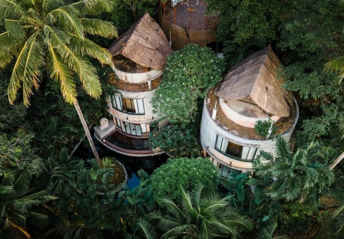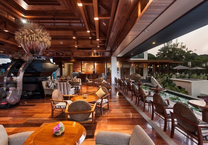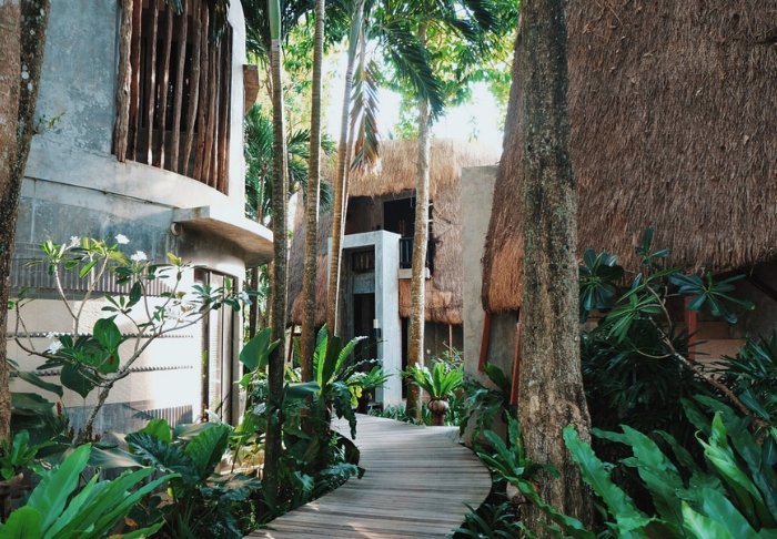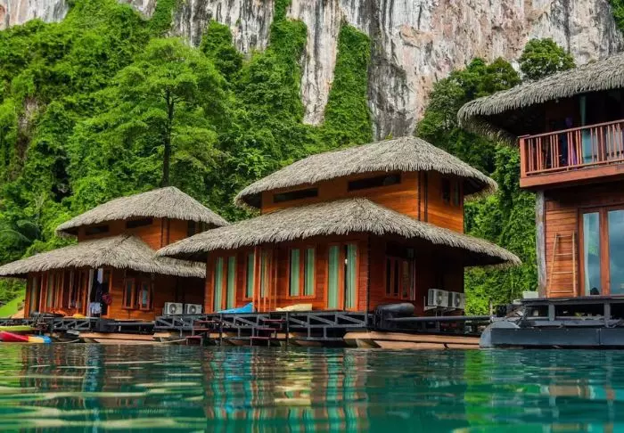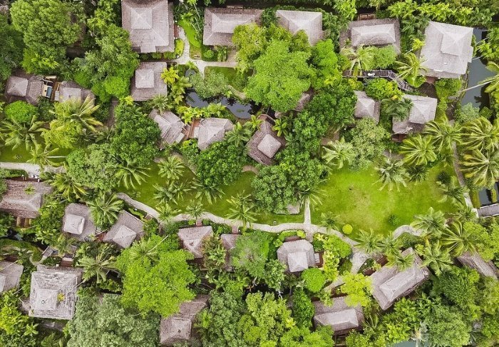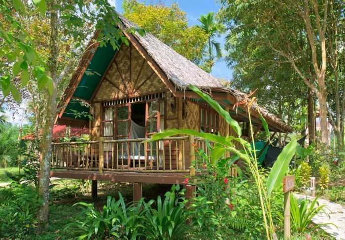 Resortet er udelukkende bygget i træ og blender derfor smukt ind i den omkringliggende natur med sin fine arkitektur.