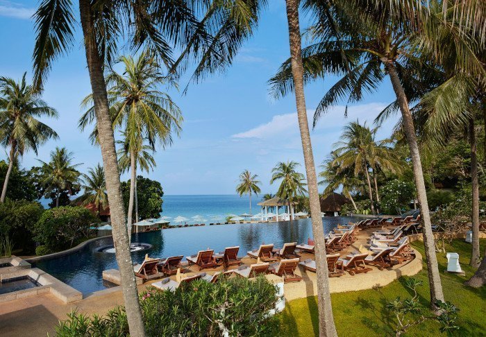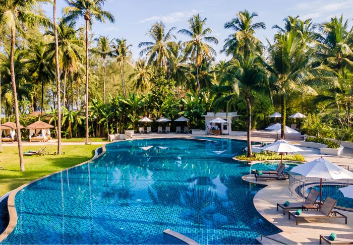 Foran frodige bjerge og mellem svajende kokospalmer, finder du Outrigger Khao Lak Beach Resort, der ligger direkte ned til Bangsak-stranden med udsigt over Andamanerhavet.
