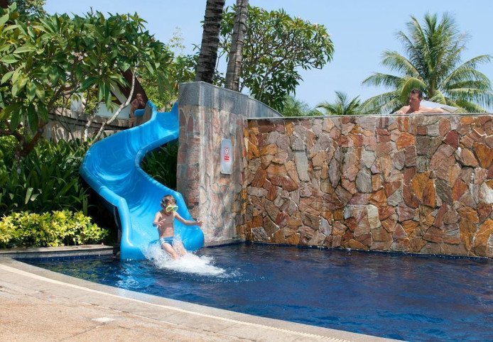Resortet består af hele 3 hotelfløje, der hver er udstyret med hyggelige poolområder. Desuden er der også en fantastisk infinity-pool, og her går tiden nærmest i stå, når man hviler hovedet på poolkanten til udsigten af svajende palmetræer og det smukke smaragdgrønne hav. Resortet har også et poolområde for børn med god mulighed for at plaske i vand og få sig en lille tur på vandrutsjebanen.