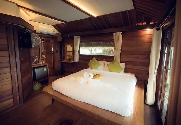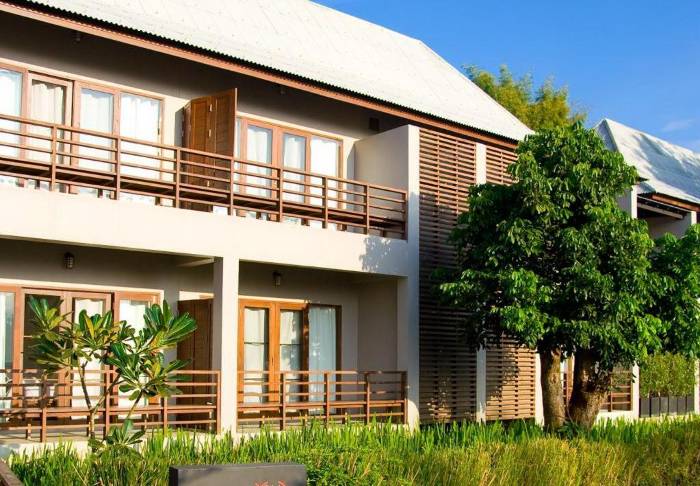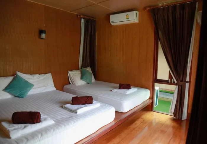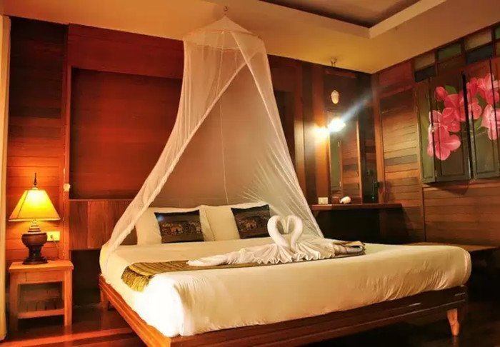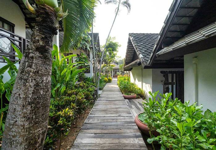 Resortet er bygget som en traditionel landsby og oser af hygge. Her er i alt 62 værelser indrettet i klassisk thailandsk stil med mørke teaktræmøbler og farverige vægge og tekstiler. Samtlige værelser har wi-fi, aircondition, minibar, mineralvand på flaske, kaffe/te faciliteter, tv, telefon samt paraply. Badeværelset er udstyret med hårtørrer og toiletartikler. Fra balkonen kan du nyde udsigten til enten haven eller kanalen.