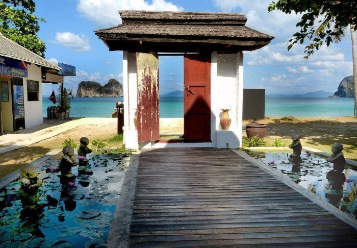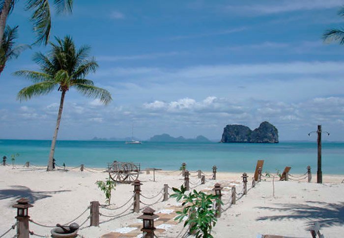 Stranden ligger blot et stenkast væk og her kan du opleve de mange longtail både sejle i pendulfart mellem Aonang og Railey. Fra stranden er der en flot udsigt over Andamanhavet og de lodrette kalkstensbjerge.